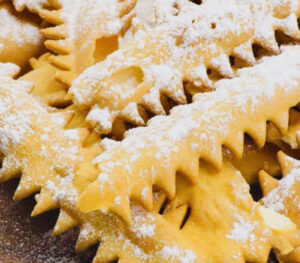 venivano preparate quelle che sarebbero poi diventate le chiacchiere: parliamo delle frictilia, dolcetti a base di uova e farina, fritti nel grasso di maiale e distribuiti alla folla che si riversava per le strade della città. Era abitudine del tempo preparare le frictilia in grande quantità, per la semplicità della ricetta e per gli ingredienti poveri di cui si componeva, in modo che si potessero conservare e gustare anche nelle settimane successive.